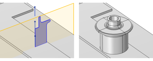 Select the Unite with input objects checkbox to unite the input objects with the revolved objects. Clear the