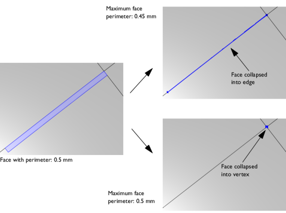 The Collapse to vertex tolerance controls if a sliver face is collapsed into an edge or a vertex. By default, it is set to