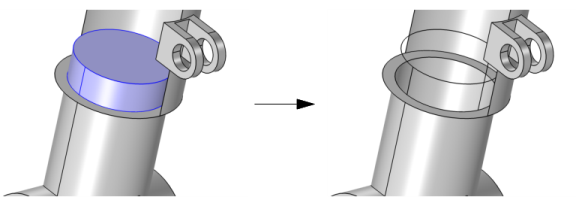 The operation removes selected faces that are isolated or are located between two domains by ignoring them. Composite domains are formed which may simplify meshing the geometry, for example if narrow domain regions are avoided.