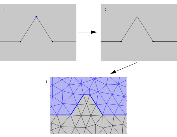 Use the Keep input for mesh control checkbox to specify that the selected vertices disappear from the geometry but become available when you build the mesh. You can, for example, use a
