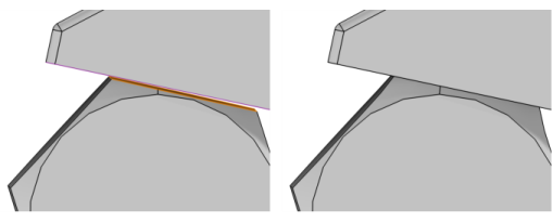 The method One-to-one forces the faces to remove to be matched with those on the keep side without any imprints. This is useful when the shapes are approximately the same and you want to match them exactly. Note that if the face shapes differ too much the merge will generally not be successful with this option.