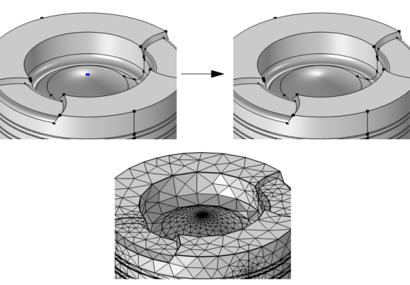 Use Mesh control vertices for precise control of the mesh in specific regions of the geometry, without affecting the geometry used for assigning physics.