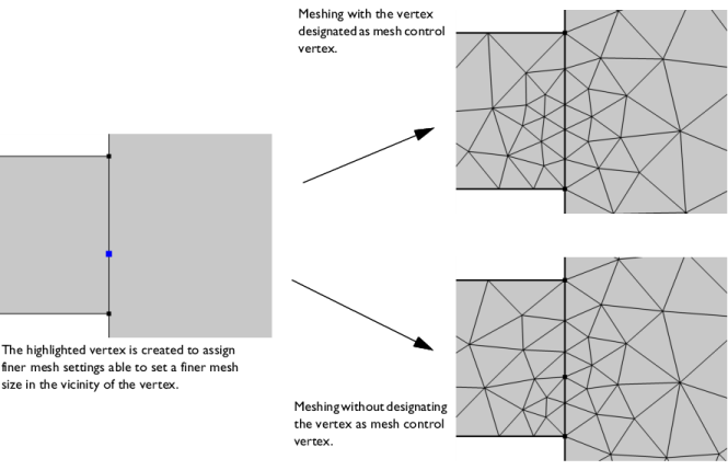composite edges, if necessary. The vertices become available when you build the mesh. This makes it possible to partition a face or an edge to prepare it for swept meshing, or to control the mesh size in a specific region, without modifying the geometry that appears when assigning physics settings.