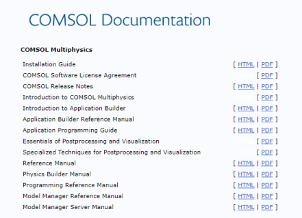 Based on your license, links to PDF and HTML versions of the product documentation are accessed from this window. When you click HTML it jumps to the first page of the documentation for that product; when you click PDF you can Open or Save a full PDF version of that document.