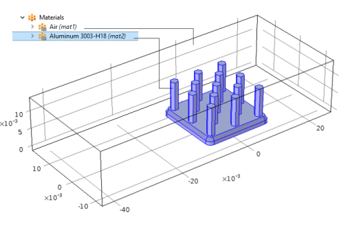 To see the domain groups (that is, groups of domains with equal material settings), the variable root.material.domain — and, for lower-dimensional entities when applicable, root.material.boundary, root.material.edge, and root.material.point — is available and evaluates to unique integer values for each domain group.