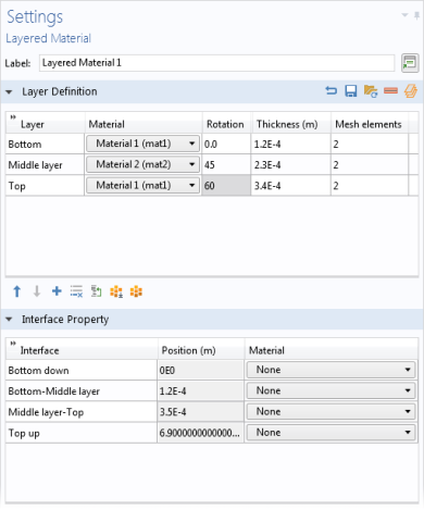 Linear Elastic Material, Layered in the Shell or Membrane interface (requires the Composite Materials Module).