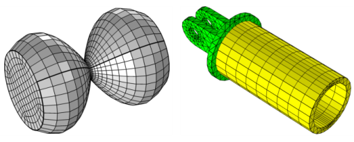 The Mapped mesher generates a structured mesh with quadrilateral elements (as shown to the left in