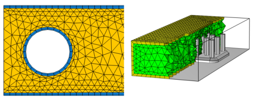 The Boundary Layers operation also generates a structured mesh. A boundary layer mesh has a dense element distribution in the normal direction along specific boundaries, integrating into an existing structured or unstructured mesh.