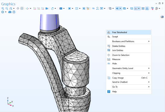 The Sequence type of the Mesh node. Having an empty mesh, a mesh generated based on a geometry, or an imported mesh will all result in different content in the menu. For example, operations associated with imported meshes will not appear in the menu if the mesh is generated based on a geometry.