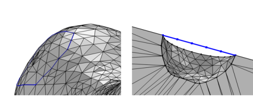 Select Explicit distribution to use an explicit, user-defined element distribution. To define the distribution of mesh elements, enter a vector-valued expression defining a strictly increasing sequence of nonnegative numbers (using comma-separated numbers) in the Relative placement of vertices along edge field, specifying the relative arc length values of the mesh vertices along the edge or boundary. Select the Reverse direction checkbox to reverse the direction of the explicit distribution.