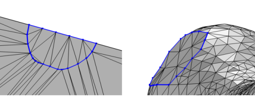 ) to create meshed boundaries within selected edges in a surface mesh in 3D, as shown in
