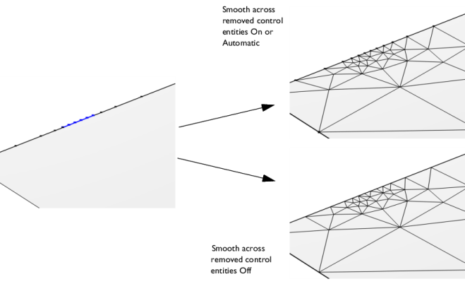 Use the Smooth across removed control entities setting to smooth the transition in element size across removed control entities. Use