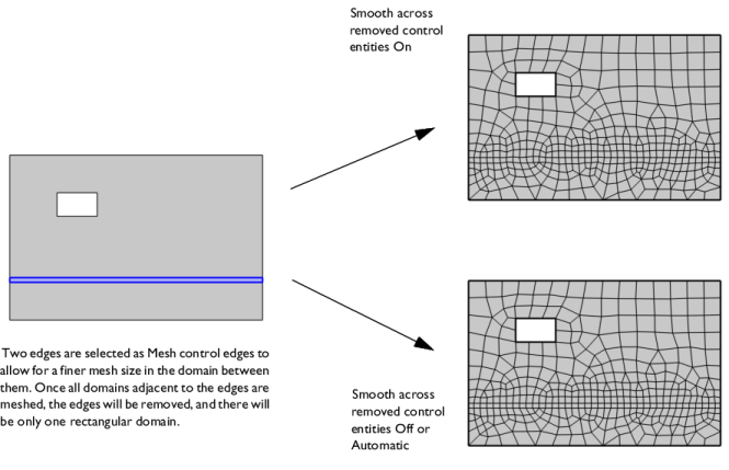 Use the Smooth across removed control entities setting to smooth the transition in element size across removed control entities. Use