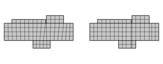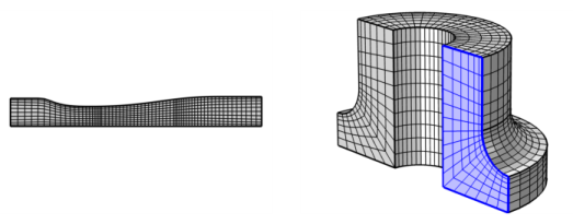 Transfinite in 2D, the positions of the interior mesh vertices are determined by transfinite interpolation in the 2D parameter space of the corresponding surface. This method works best for faces with smooth surface parameterization. If you select