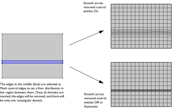 Use the Smooth across removed control entities setting to smooth the transition in element size across removed control entities. Use