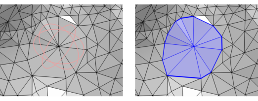 ) to partition geometric entities of a mesh by creating at least one new geometric entity for the elements enclosed in the specified ball, as seen in
