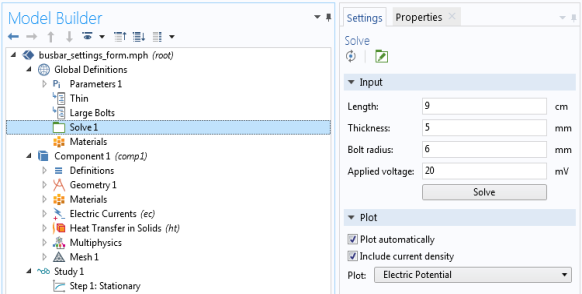 Forms that you create in the Application Builder can also be used as settings forms in the Model Builder tree that can provide custom settings connected to methods for performing some special task in a model. Such forms become available in the