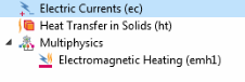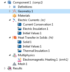 Multiphysics node. Using a workflow where you add physics interfaces and multiphysics couplings manually makes it possible to analyze and validate one physics at the time before solving the full multiphysics model.