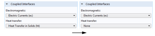 FigureĀ 3-17) as there is no heat transfer interface to couple to. To avoid that the multiphysics coupling is turned off unintentionally, a warning