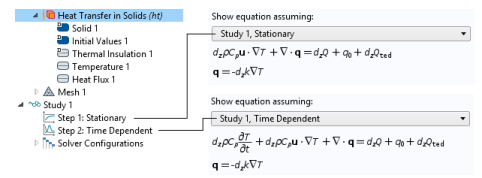Equation Form Settings). When the equation form is controlled by the study, the list lets you choose between all available study steps. The equations below will be displayed for the equation form that is automatically selected for the selected study step.