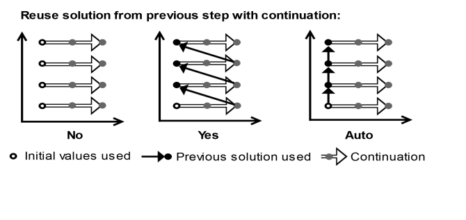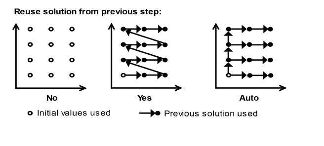 Reuse solution from previous step then determines how the solutions are reused between multiple continuation sweeps, if there are additional parameters to sweep over, as shown in