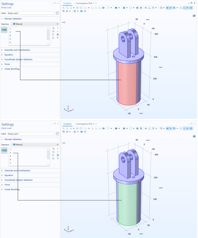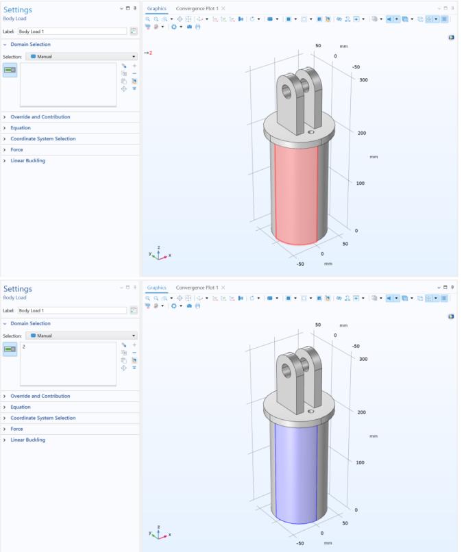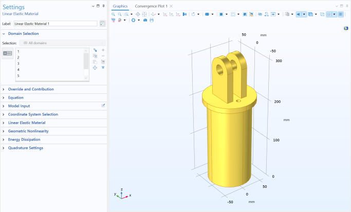 Right-Clicking to Select Geometric Entities and Add Physics Features) or from the toolbar, and the selection for the current node in the model tree is highlighted in yellow in the