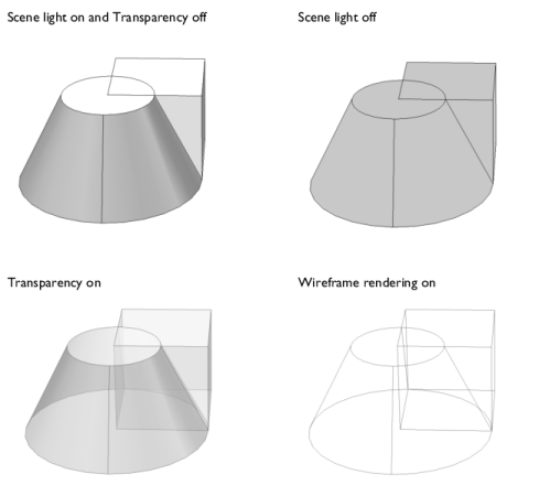 See also Preference Settings to set the level of graphics detail to Wireframe from the Detail list on the Graphics page for speeding up the rendering of complex models or to improve visual appearance by selecting any of the options: Wireframe, Low, Medium (the default), or High.