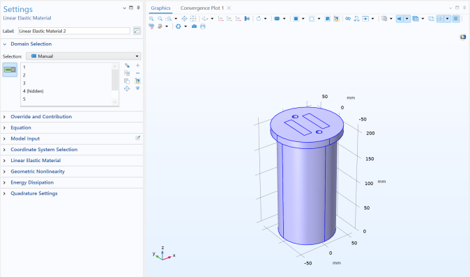 Click the Zoom to Selection button to zoom into the selected geometric entities. This button is also available in connection with the selection lists for domains, boundaries, edges, and points. This zoom operation also updates the center of rotation and sets a manual rotation center, which will stay active until you click the Zoom Extents or the Go to Default 3D View button or otherwise change the mode of the rotation center.