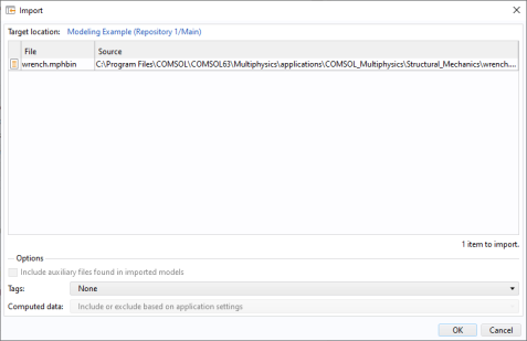 Click OK to import the file into the database.