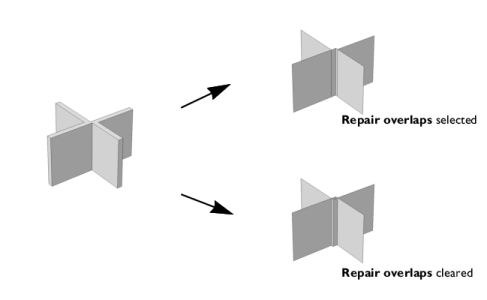 Select the Repair overlaps checkbox to repair areas where two or more generated midsurfaces overlap.