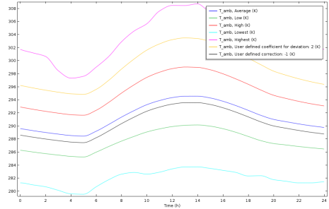The heating and cooling wind correlations are illustrated in Figure 3-7 for the variation of temperature over 1 day, at New York/John F. Ke., on the 1