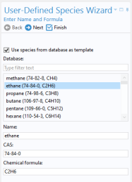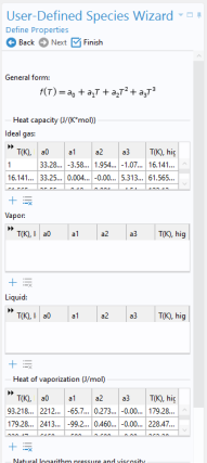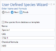 Using the Reaction Engineering or Chemistry interface, choose User-Defined Species from the Thermodynamics section of the Reaction Engineering or Chemistry toolbar.