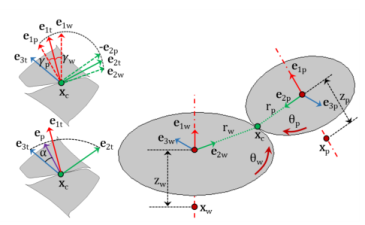 θpn. They are defined as the rotation of the wheel and pinion about the first axis of their respective local coordinate system.