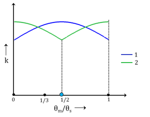 Figure 3-21: The graph shows the variation of the gear tooth stiffness of the first and second teeth in a mesh cycle.