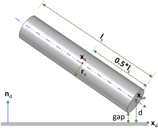 The shortest distance between the source and the planar destination (d) is the projection of the distance between source end point and a point on the plane in the surface normal direction. It is calculated as