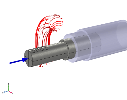 In the Settings window for Streamline, click Replace Expression in the upper-right corner of the Expression section. From the menu, choose Component 1 (comp1) > Magnetic Fields > Currents and charge > mf.Jx,...,mf.Jz - Current density (spatial frame).