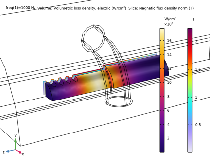 In the Settings window for Volume, click Replace Expression in the upper-right corner of the Expression section. From the menu, choose Component 1 (comp1) > Magnetic Fields > Heating and losses > mf.Qrh - Volumetric loss density, electric - W/m³.