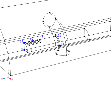 . The edge points 4, 19, and 31 reach the highest temperatures.|