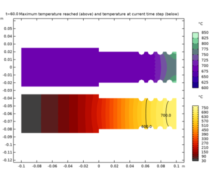 In the Model Builder window, under Results > Temperature Cross Sections right-click Contour 5 and choose Duplicate.