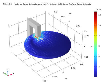 In the Settings window for Arrow Surface, click Replace Expression in the upper-right corner of the Expression section. From the menu, choose Component 1 (comp1) > Magnetic and Electric Fields > Currents and charge > mef.Jx,mef.Jy,mef.Jz - Current density.