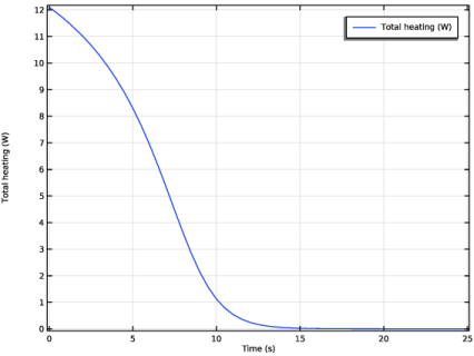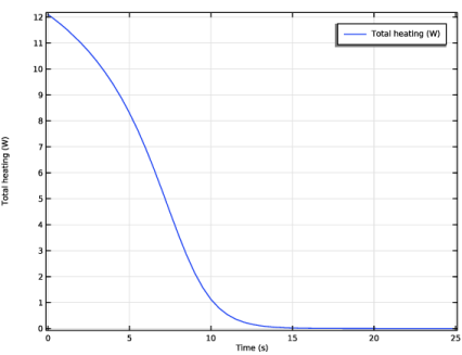In the Settings window for Global Variable Probe, click Replace Expression in the upper-right corner of the Expression section. From the menu, choose Component 1 (comp1) > Definitions > Variables > totalHeating - Total heating - W.