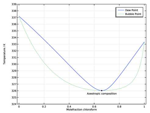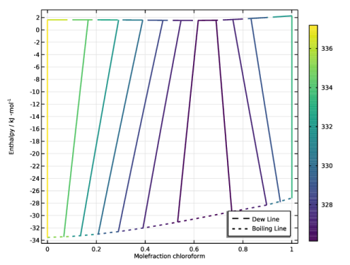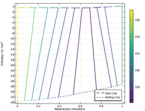 In the Model Builder window, under Study 1 - Dew Point and Boiling Point Curves click Step 1: Stationary.