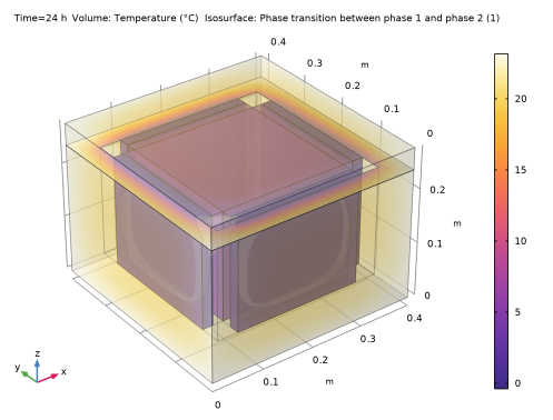 In the Model Builder window, under Component 1 (comp1) > Heat Transfer in Solids (ht) > Fluid 1 click Phase Change Material 1.