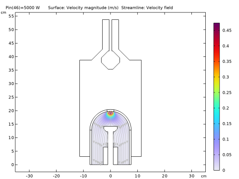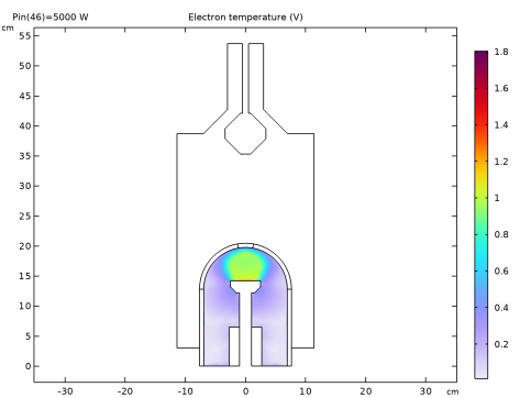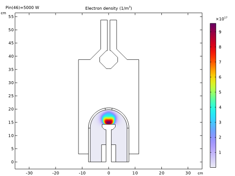 In the Model Builder window, under Results, Ctrl-click to select Electron Density (plas) 1, Electron Temperature (plas) 1, Electric Potential (plas) 1, Velocity (spf), Pressure (spf), Velocity, 3D (spf), Temperature (ht) 1, Electric Field (emw) 1, S-Parameter (emw), and Smith Plot (emw).