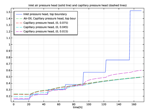 In the Model Builder window, expand the Inlet Air Pressure and Capillary Pressure, Air-Oil node, then click Point Graph 1.