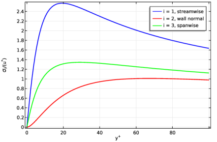 Include anisotropic turbulence in boundary layers checkbox is selected, the velocity perturbations are computed using different expressions in the streamwise, spanwise, and wall normal directions at the position of each particle.