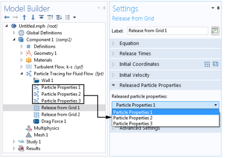 In the Model Builder window, under the Charged Particle Tracing (cpt) interface click the default Particle Properties node.