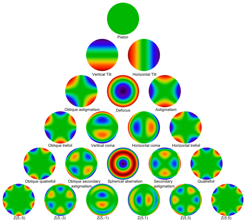 The normalized Zernike polynomials up to fifth order, along with their common names, are given in Table 3-4.