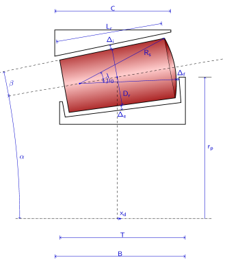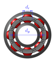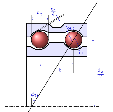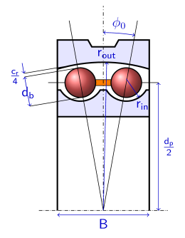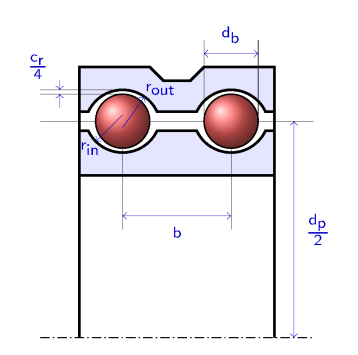 dp is the pitch diameter of the bearing. The loaded distance vector between the inner and outer race curvature centers is
