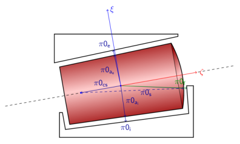 Let the relative center displacement between the inner and outer race be ur, and the relative tilt about local